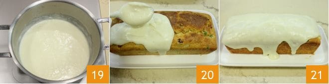 When the cream has thickened 19, turn off the heat and cover it with cling film to keep it from drying out. You can unmold the fake sweet plumcake onto a serving plate and glaze it with this delicious Parmesan cream (20-21)!