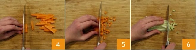 and cut them into sticks 4 then into cubes of 0.25 inch 5. Proceed the same way with the celery 6.