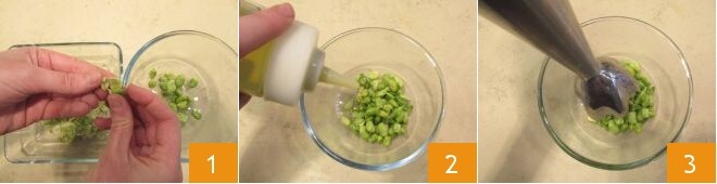 To make the fava bean and cheese sandwich, start with the How to Clean Fava Beans: remove the filament from the pod, open it gently to remove the fava beans and remove the outer skin 1, place the shelled fava beans in a bowl and season with salt, pepper, and olive oil 2, blend the fava beans with an immersion blender 3