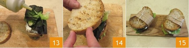 season with a drizzle of oil 13 and close with the third slice of bread 14. Your first fava bean and cheese sandwich is ready; finish the ingredients to prepare the second and share this genuine goodness outdoors 15!