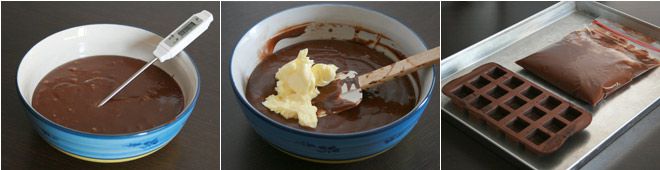 Take the molds out of the fridge, fill them with the ganache cream leaving a margin of about 1/25 inch from the edge.
