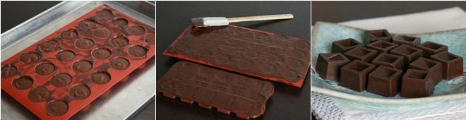 Slightly tap the molds on the work surface to eliminate any air bubbles, then place them in the fridge for an hour until the ganache cream sets.