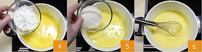 Then add the cornstarch (alternatively, you can use potato starch) and the previously sifted flour (4-5) and mix everything until you get a homogeneous mixture 6.
