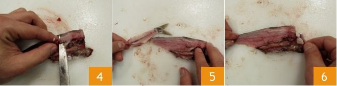 lift the central bone and remove it down to the tail (4-5). Clean the inside thoroughly from any remains 6,