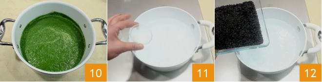 until you obtain a smooth cream, a sort of puree 10. Separately, in a high-sided pot, heat some salted water 11, and once it reaches a boil, add the black rice 12 and cook for about 20 minutes or the time indicated on the package.