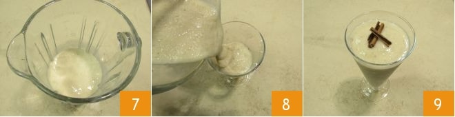 Blend until you get a thick and creamy mixture 7. Then pour it into the glasses 8 and decorate with a few pieces of cinnamon 9. Serve the banana milkshake immediately and enjoy it well chilled!