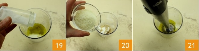 the oil and a pinch of salt 19. Also add the grated pecorino 20 and blend everything 21,