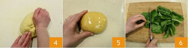 knead it 4 and form a dough ball that you can wrap in plastic wrap 5. Place the egg pasta in a cool, dry place. In the meantime, focus on the filling: wash the herbs under running water, then break the larger ones 6