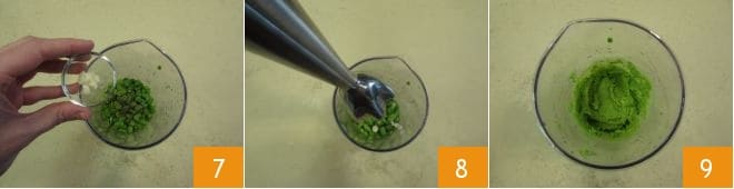 Also add the garlic clove, deprived of its core and chopped into small pieces 7. Blend everything until you obtain a cream 9. If it turns out too solid, add a bit of water.