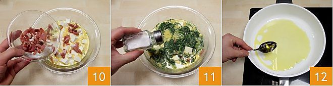 and the bacon 10. Mix all the ingredients with a fork, then salt and pepper 11. Put the oil in a pan and heat it 12,