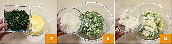 Now add the monk's beard 7, the Grana Padano 8, the primosale 9,