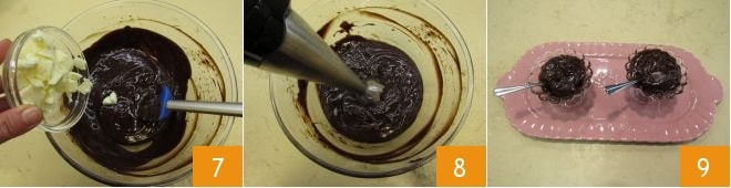 At this point, also add the soft butter cut into cubes, a little at a time, as it should also be incorporated gradually 7 and continue to mix with the spatula until it is completely melted. Your dark chocolate ganache is now ready, but if you prefer, you can blend it with an immersion blender for a few seconds 8, being careful not to incorporate air. In this way, you will obtain a smoother texture and can use it as you prefer 9!