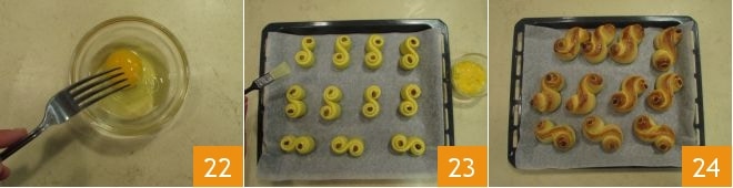 Beat the egg in a small bowl 22, and brush the surface of the sweets after the indicated thirty minutes 23. Then bake in a preheated static oven at 356°F for 20/25 minutes, placing the baking sheet on the middle rack of the oven. Once baked, take out the Saint Lucia Buns 24, let them cool slightly before enjoying them!