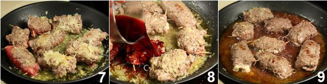 Make sure the rolls brown on both sides 7, then pour wine over them 8, spreading it well in the pan 9.