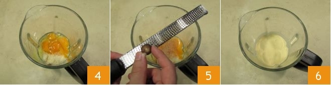 then the eggs 4 and season with nutmeg 5. Adjust the salt and blend everything until creamy and homogeneous 6.