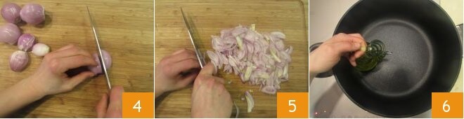 then cut them in half 4 and then into thin regular slices lengthwise 5. At this point, heat a saucepan, and add a drizzle of oil to give a bit of richness 6.
