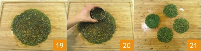 then transfer it to a cutting board 19 and using an 8 cm pastry cutter, cut out smaller wafers (20-21). You will get about 12.
