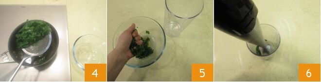 Wait 30 seconds, then drain it 4. Once cooked, it will weigh about 2.6 oz. Then let it cool slightly, squeeze it 4, and place it in a tall-sided container 5. Blend it with an immersion mixer 6