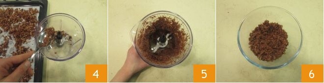 Wait a few moments, then transfer them to the container of a mixer with blades 4 and blend until you get a very fine powder 5. Transfer to a small bowl and set aside 6.