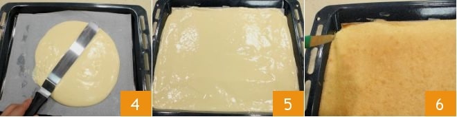 Take a 12x16 inch baking tray, butter it, and line it with parchment paper, and carefully spread the batter with a spatula 4: you should achieve a layer no higher than 1/4 inch 5. Bake in a preheated static oven at 430°F for 8-9 minutes (if using a fan oven, 390°F for 4-5 minutes). Once cooked, take it out and gently detach the edges that have stuck to the pan with a small knife 6;