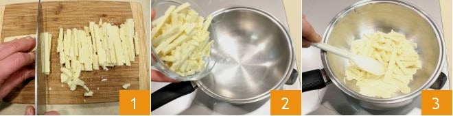 To temper white chocolate, chop it 1 and melt it in a double boiler (2-3), remembering that it is preferable that the water in the saucepan does not touch the bottom of the bowl containing the chocolate; moreover, the water should not come into contact with the chocolate. White chocolate should reach a temperature of 113°F (measure with a kitchen thermometer);