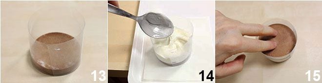 Now that everything is ready, assemble your ice cream sandwiches: take a round cookie and wrap a sheet of acetate or alternatively make a double turn of parchment paper around it 14. Fill the mold created with two tablespoons of ice cream (about 2.8 oz) and let it firm up in the freezer for half an hour 15. Once it is well set, place another cookie on top and remove the wrap around 15. The ice cream sandwich is ready: serve them immediately or store them in the freezer on a sheet of parchment paper.