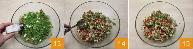 and adjust the salt if necessary 13. Mix with a spoon so that the grains are flavored with the seasoning 14. Your summer spelt and barley salad is ready to be enjoyed 15 and served cold.