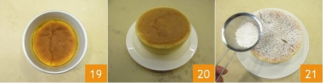 Let it cool completely: don’t worry if once cooled you notice that the cake has relaxed a bit by deflating 19. At this point, place the pan in the refrigerator for at least 3 hours, so that everything can firm up well. Unmold on a serving plate 20, dust with powdered sugar 21; enjoy your Japanese cheesecake!