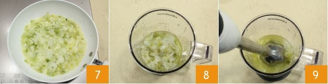 until they are soft 7. Then season with salt and pepper. Once cooked, place the scallions in a blender bowl 8 and blend them until you obtain a smooth sauce 9.