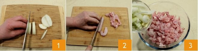 You can extend them with a little meat broth 10 to facilitate cooking, but they should cook for only a few minutes while remaining crunchy; adjust with salt and pepper, add the chopped parsley 11, mix, and turn off the heat. Now prepare the rabbit ragù: take the onion, half a stalk of celery, and a carrot 12 and finely chop them.