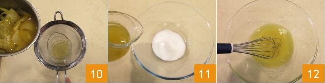 After this time, strain the infusion with a sieve, collecting it in a pitcher 10. Put the sugar in a large bowl and pour in the infusion 11, mixing well to dissolve the sugar 12.