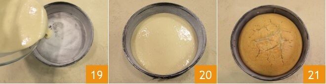 Pour the batter into the pan 19: if necessary, use a spatula to spread the batter evenly 20 and bake in a preheated static oven at 350°F for 50 minutes. After this time, do the toothpick test: if it comes out dry and clean, it means the cake is cooked. Remove it from the oven and let it cool 21.