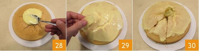 and spread it evenly over the entire surface, using the back of a spoon 28. Decorate the cake with a slice of ginger 29 and let it rest until the glaze is dry 30. Your lemon and ginger water cake is ready to be enjoyed!
