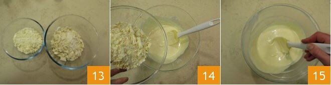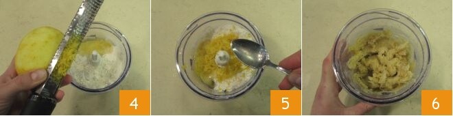 the zest of 2 lemons 4 and the lemon juice 5, then run the mixer again until you obtain a soft but compact mixture 6.