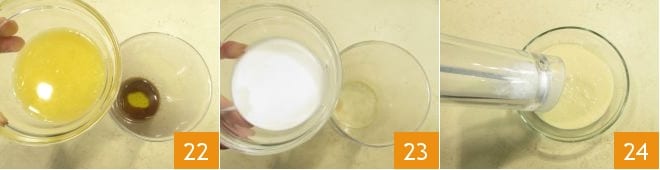 orange juice 22, and fresh cream 23 and blend with an immersion blender. Adjust the sauce with salt 24 and keep it warm until ready to use.