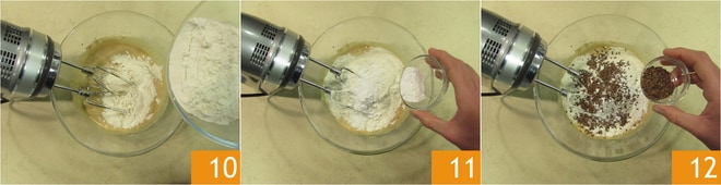 Incorporate the sifted flour and baking powder 10 11 and the flax seeds 12.