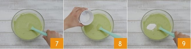 until you obtain a homogeneous mixture 7. Then add the baking powder 8 and mix as previously done 9.