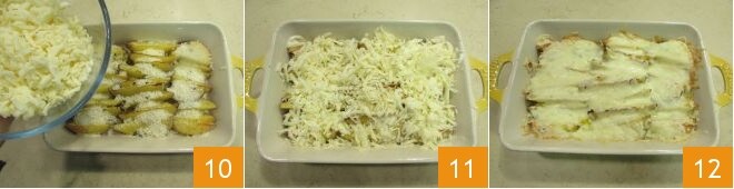 and the remaining Grana Padano 10. Increase the oven temperature to 464°F (240°C) and bake the potatoes for another 20 minutes 11 to melt the cheese. Your melting potatoes are ready to be served hot 12!