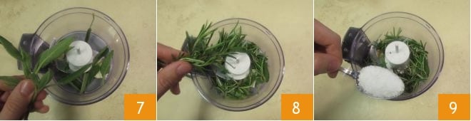 sage leaves 7, rosemary sprigs 8, and coarse salt 9.