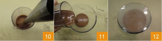 At this point, work the cream with an immersion blender, keeping it immersed to avoid incorporating air 10, until it is smooth, fluid, and shiny. Then transfer it to a bowl 11. Cover with plastic wrap 12 and let it crystallize in the refrigerator for 12 hours.
