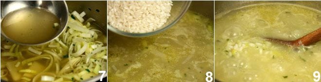 Then add all the vegetable broth 7 and cook the soup for about 30 minutes, until the leeks are almost completely melted and the potatoes are tender. Add the rice 8 and cook everything for another 20 minutes, stirring occasionally 9. Adjust the salt and serve the rice soup with leeks and potatoes piping hot, sprinkled with grated Parmesan and garnished with parsley leaves.
