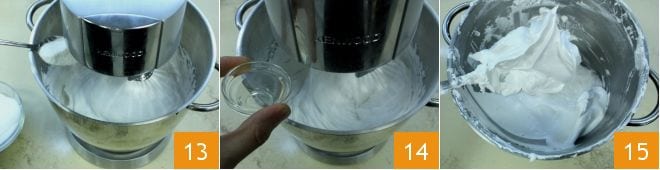 then gradually add the sugar mixed with corn starch 13. Finally, pour in the apple cider vinegar (or white wine vinegar) 14. Keep the beaters running until you get a creamy and firm mixture 15.