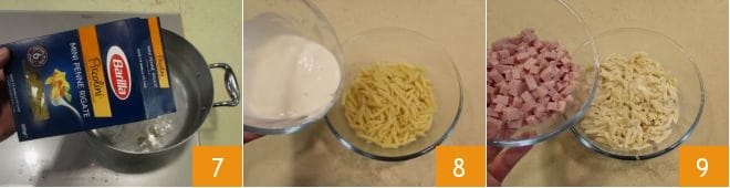 How to prepare Mini penne casserole with ham and mozzarella