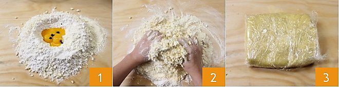 To prepare the Saint Agatha's breasts, knead the pastry (Shortcrust pastry for more instructions): on a work surface, pour the flour that you have blended in a mixer with cold butter, add the powdered sugar, egg yolks (set aside the egg whites for the glaze), seeds from a vanilla bean 1 and knead 2 with your hands to obtain a homogeneous mixture. Wrap the pastry in plastic wrap and let it rest in the refrigerator for at least half an hour 3.