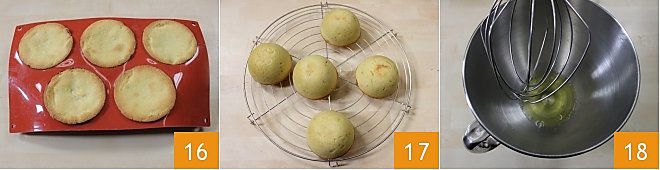Bake everything in a preheated static oven at 392°F for 20 minutes (fan oven 356°F for 15 minutes). When the Saint Agatha's breasts have browned on top, remove them from the oven and let them cool in the molds 16, then unmold them when they are completely cold (otherwise the hot filling will not hold). Place them on a rack and in the meantime prepare the glaze: beat the egg whites with an electric mixer or stand mixer 18,