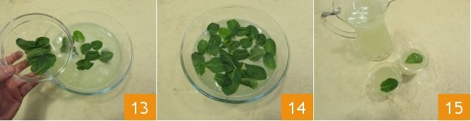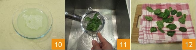 Set the container aside 10 and in the meantime, deal with the mint, so after detaching all the leaves from the stem, rinse them 11 and dry them gently with a clean kitchen towel 12.