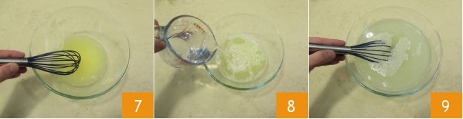 After stirring well, so that the sugar dissolves 7, also pour in the water 8 and continue stirring 9.