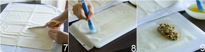 Put the meat aside in a bowl, add the finely chopped parsley, mix and let cool. Preheat the oven to 300°F. Prepare the cigars: cut the filo pastry sheets into three 7 to obtain three rectangles of similar size. Brush one of them with melted butter 8, place a tablespoon of filling at one end of the filo pastry rectangle,