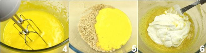 Now prepare the English cream: in a saucepan, bring the milk to a boil with the vanilla pod infusing, add it to the egg yolks beaten with sugar 4, mix well, and cook in a double boiler until the cream reaches 180°F. Then strain the cream to remove any lumps and when it is lukewarm, add it to the hazelnuts that you have blended with a teaspoon of sugar until reduced to a very fine powder 5. Dissolve in it the gelatin previously soaked in cold water and squeezed, and add the glossy whipped cream, incorporating it gently so as not to deflate it 6.