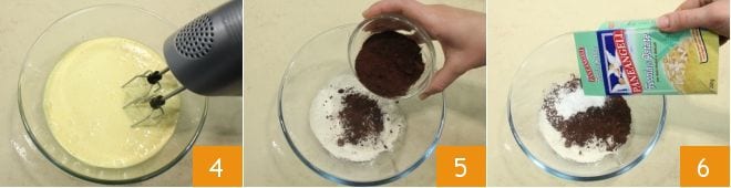 until you get a light and frothy mixture 4. In another bowl, collect the flour, cocoa 5, and cornstarch 6.